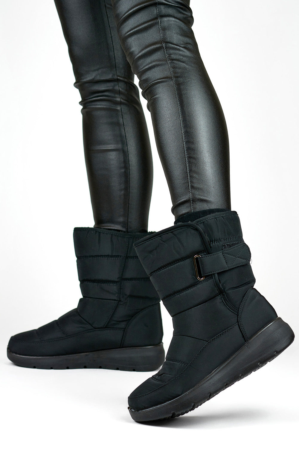 Botas de nieve para mujer asentadas sobre una plataforma de goma gruesa. Confeccionada en una combinación de piel ecológica y material textil. El centro está aislado con piel. Cierre de velcro en el lateral. ¡Perfecto para los días fríos! Definitivamente deberías tenerlos.