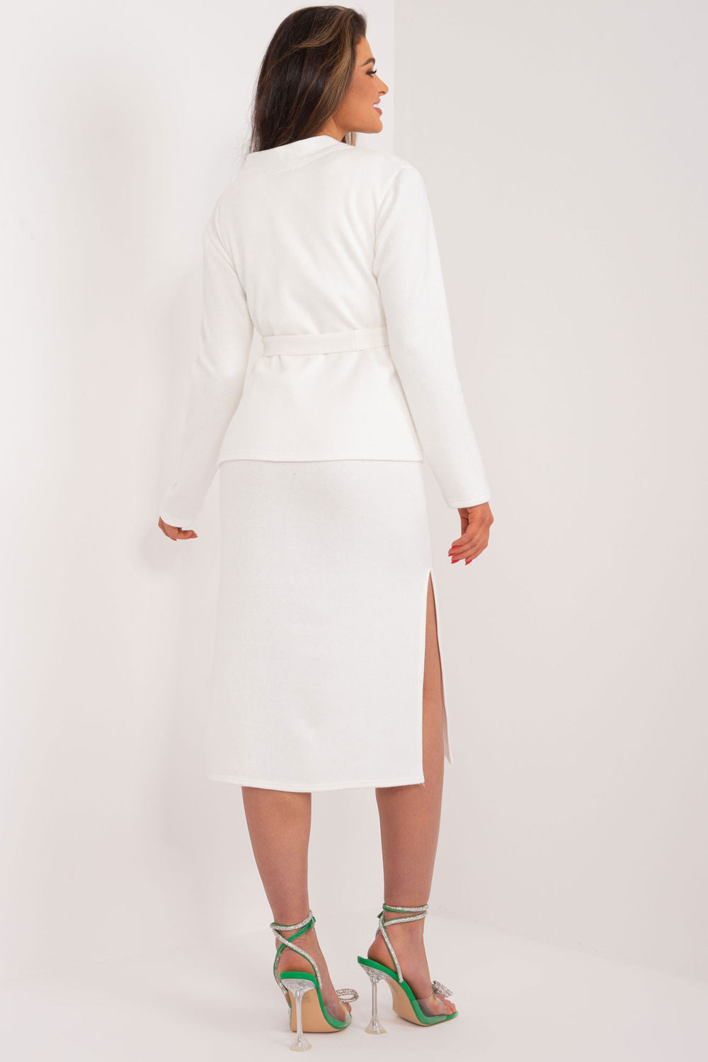 El conjunto de suéter y vestido es una excelente opción para mujeres que valoran la comodidad y el estilo tanto en el día a día como en el trabajo. Ambos elementos lucen impresionantes, creando un look armonioso. El vestido de cuello redondo y sin mangas irradia informalidad y ligereza, combinando a la perfección con el estilo diario. Las aberturas laterales en la parte inferior le dan un toque desenfadado, a la vez que se mantiene en línea con las tendencias de moda actuales. El suéter, que completa el conjunto, tiene mangas largas, ideal para los días más fríos. El cinturón del suéter es un detalle elegante que une las dos piezas en un conjunto cohesivo. El estampado predominante es liso, lo que lo hace versátil y fácil de combinar con otras prendas. Su estilo casual lo convierte en una excelente opción para diversas ocasiones, ya sea para el trabajo, salidas informales o reuniones con amigos. Este conjunto de suéter y vestido es una opción para mujeres que buscan combinar comodidad con estilo, creando un conjunto elegante y funcional que se adapte a diversas situaciones.