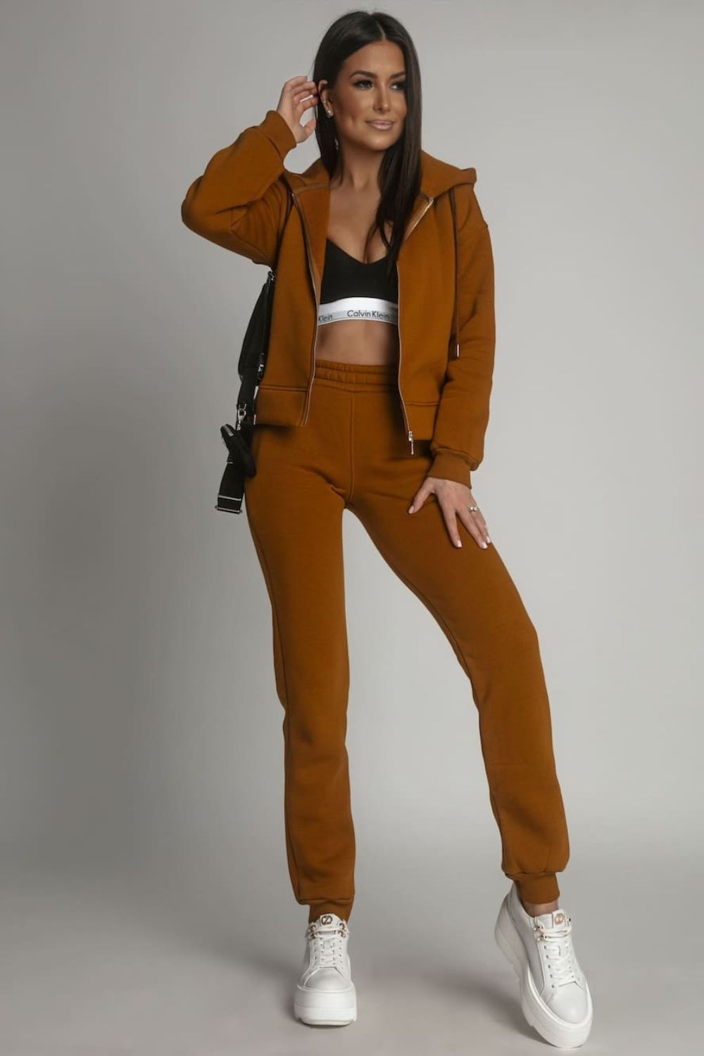 El chándal de mujer cálido y desabrochado en color caramelo será perfecto para la próxima temporada de invierno. Confeccionado en suave punto de sudadera aislado con un fino forro polar, que garantizará comodidad y comodidad de uso todos los días. Sudadera amplia, desabrochada, con capucha y manga larga. Pantalón con cinturilla elástica y bolsillos laterales. Piernas largas rematadas con bajo de canalé. Combinadas con zapatillas o zapatillas deportivas, crearás un look casual que te dará confianza.