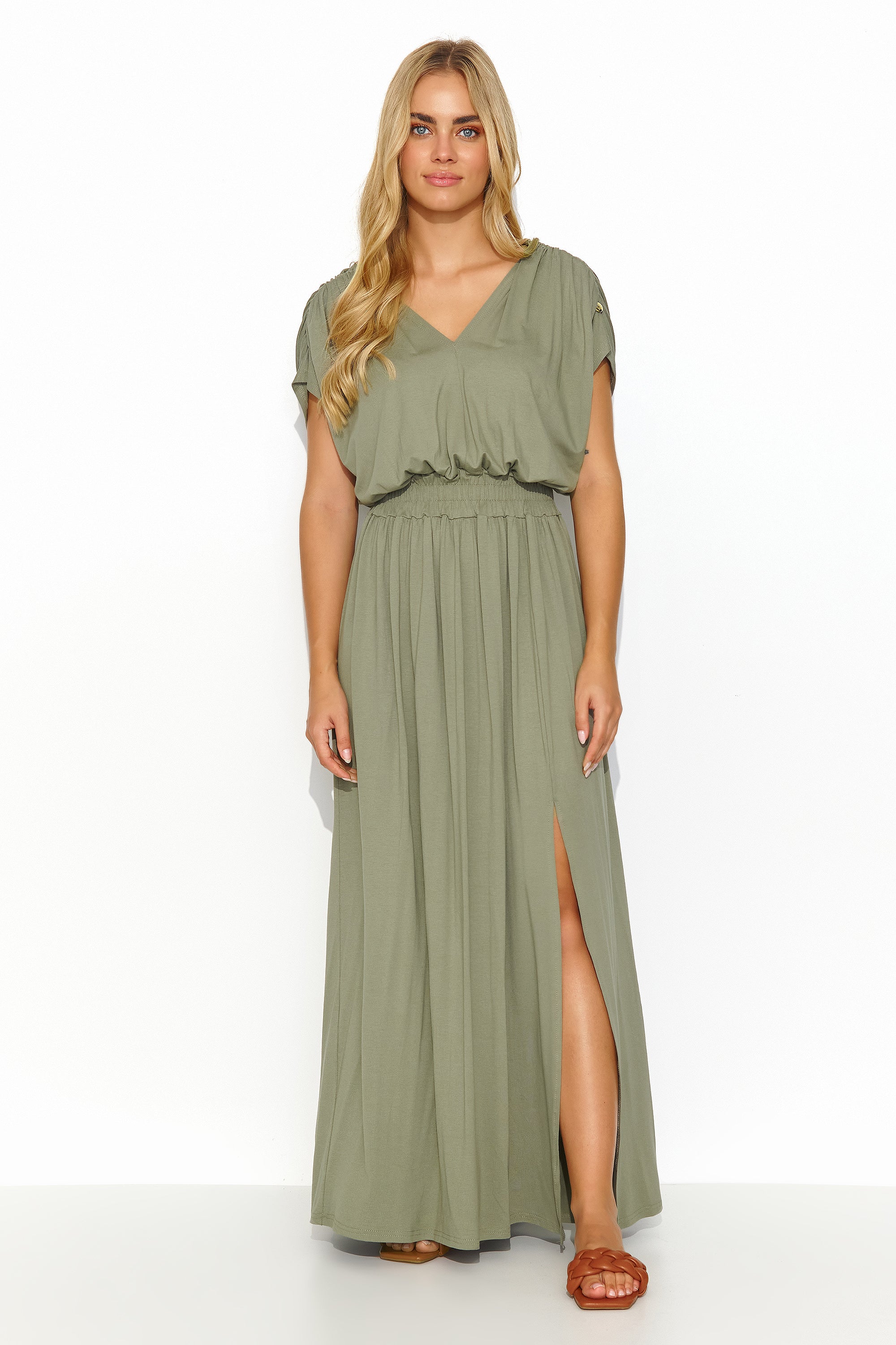 Un vestido largo y ligero de punto es la opción perfecta para los días de verano, ya que ofrece libertad y la expresión de tu estilo personal. El escote en forma de corazón y el lazo en la espalda aportan sutileza y encanto femenino, realzando el cuello y la espalda. Un cordón en la cintura la realza suavemente, aportando ligereza y elegancia. La abertura frontal añade un toque de extravagancia, realzando la silueta femenina y aportando practicidad. La manga corta con cordón, decorada con un baño dorado, le aporta elegancia y un carácter único. El vestido está disponible en una variedad de colores, como gris topo, oliva, marrón tierra, denim, negro y beige, lo que te permite elegir el tono que mejor se adapte a tus necesidades y estado de ánimo. Perfecto para diversas ocasiones, desde paseos diarios hasta reuniones nocturnas con amigas. La magia del estilo reside en los detalles.