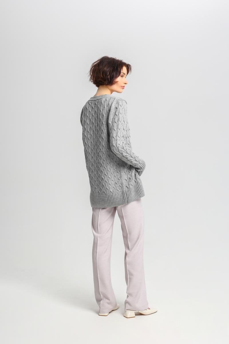 Cárdigan largo con botones en la cresta y tejido de cuadros.