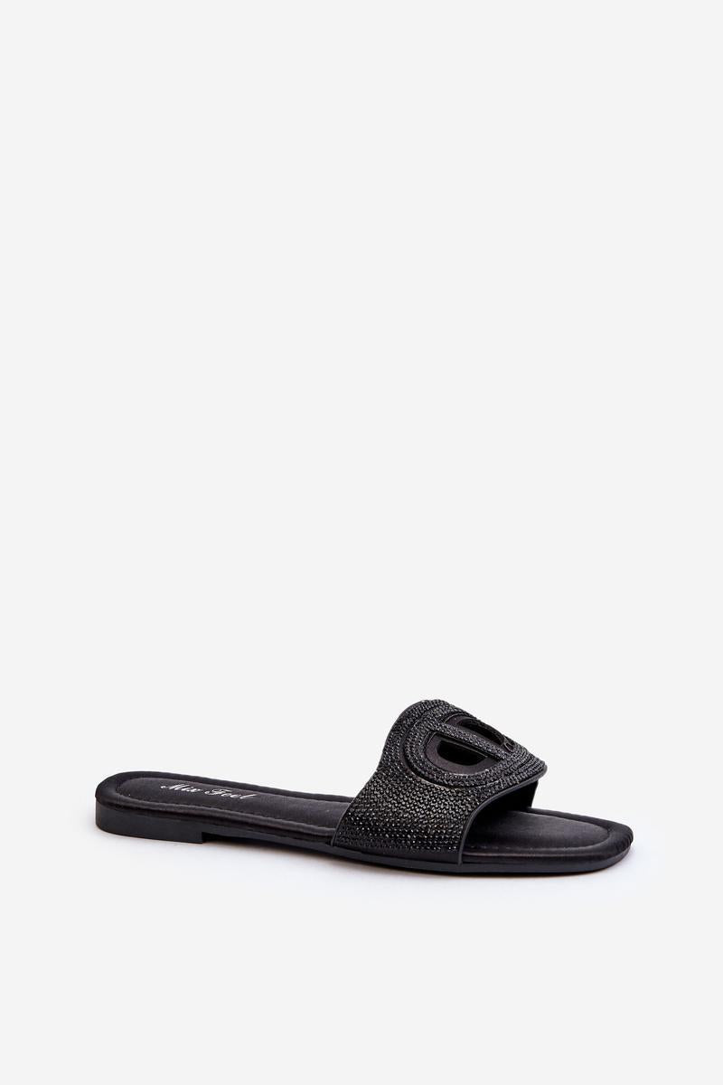 Chanclas de mujer con tacón plano, perfectas para el verano. Decoradas con pequeños cristales que les dan un toque moderno. Este modelo combina comodidad y estilo, ¡perfecto para cualquier look!