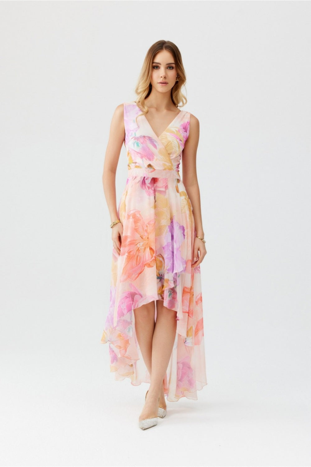 Este vestido maxi está confeccionado en una gasa ligera y delicada, muy cómoda. Tiene un hermoso escote envolvente que alarga la figura y realza el busto. Además, se caracteriza por un corte asimétrico que permite lucir las piernas y es ideal tanto para mujeres bajas como altas. Cuenta con una enagua cosida para que la tela no se transparente. Este modelo presenta hermosos estampados florales. El producto está confeccionado y confeccionado en Polonia.
