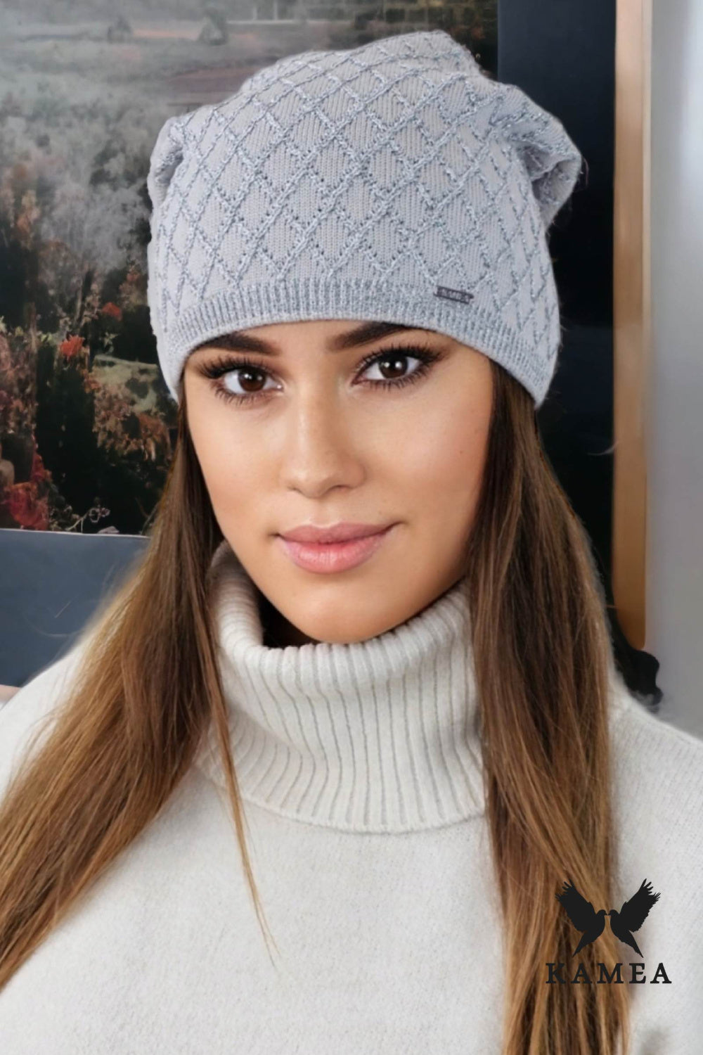 El sombrero CENTURIA es una incorporación elegante al guardarropa de otoño-invierno. Confeccionado en viscosa de alta calidad, es extremadamente suave y agradable al tacto. El sombrero está decorado con un patrón geométrico de rombos que le aporta carácter. Además, el hilo brillante le da un brillo sutil. La parte posterior del sombrero forma un elegante lazo que le añade encanto. Disponible en colores apagados, será una opción perfecta para las personas alérgicas y quienes valoran la comodidad y el estilo. Ideal para los días fríos, aportará calidez y elegancia en cualquier situación.