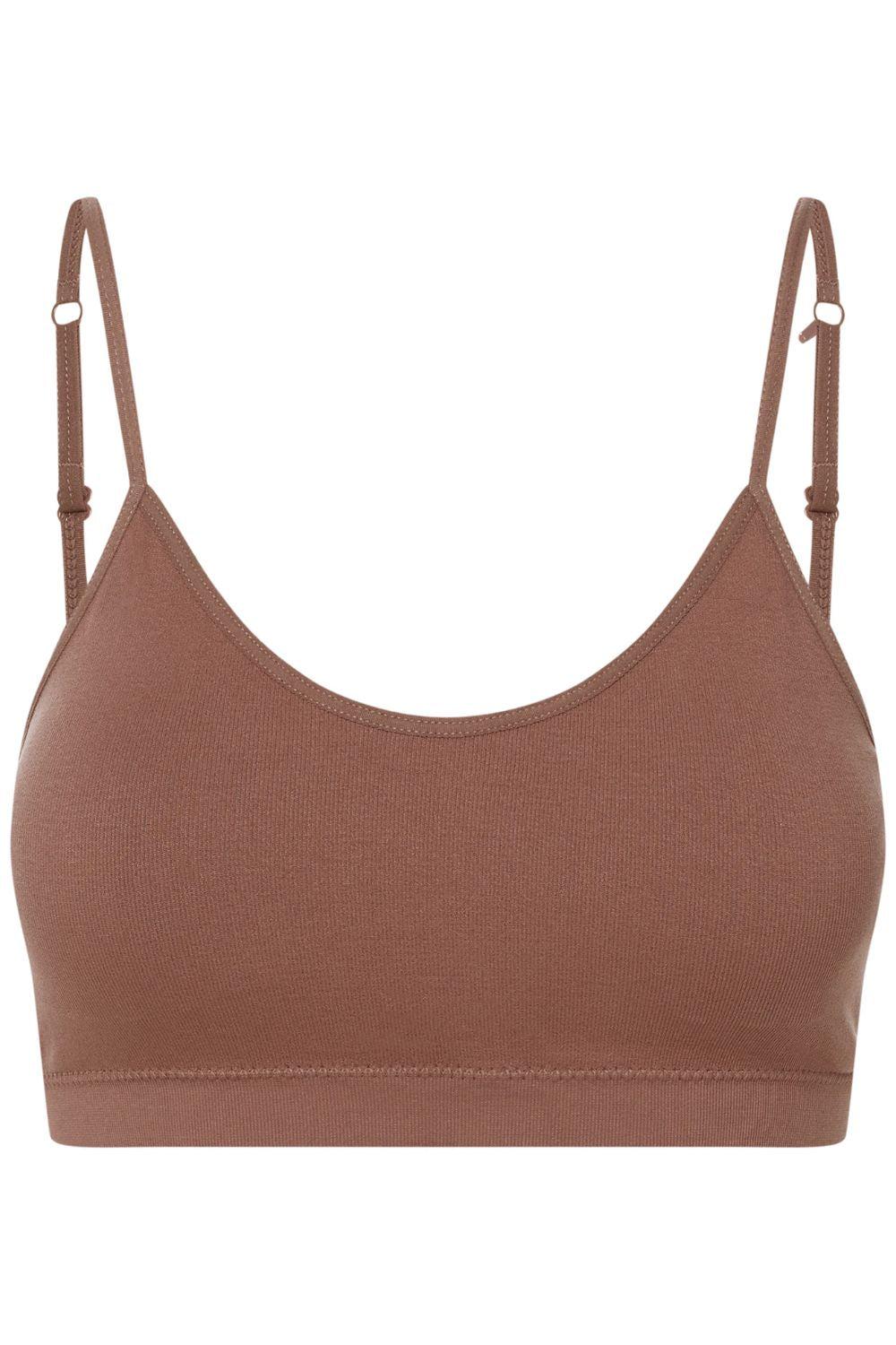 Sujetador moderno con forma de top flexible, confeccionado en tejido suave con una moderna estructura acanalada. El modelo se coloca sobre la cabeza, sin cierres, con tirantes ajustables para un mejor ajuste. Equipado con almohadillas extraíbles que permiten ajustar el nivel de sujeción según sea necesario. Ideal para uso diario, ofrece total comodidad y libertad de movimiento. El producto se presenta en una elegante caja, ideal también para regalo.