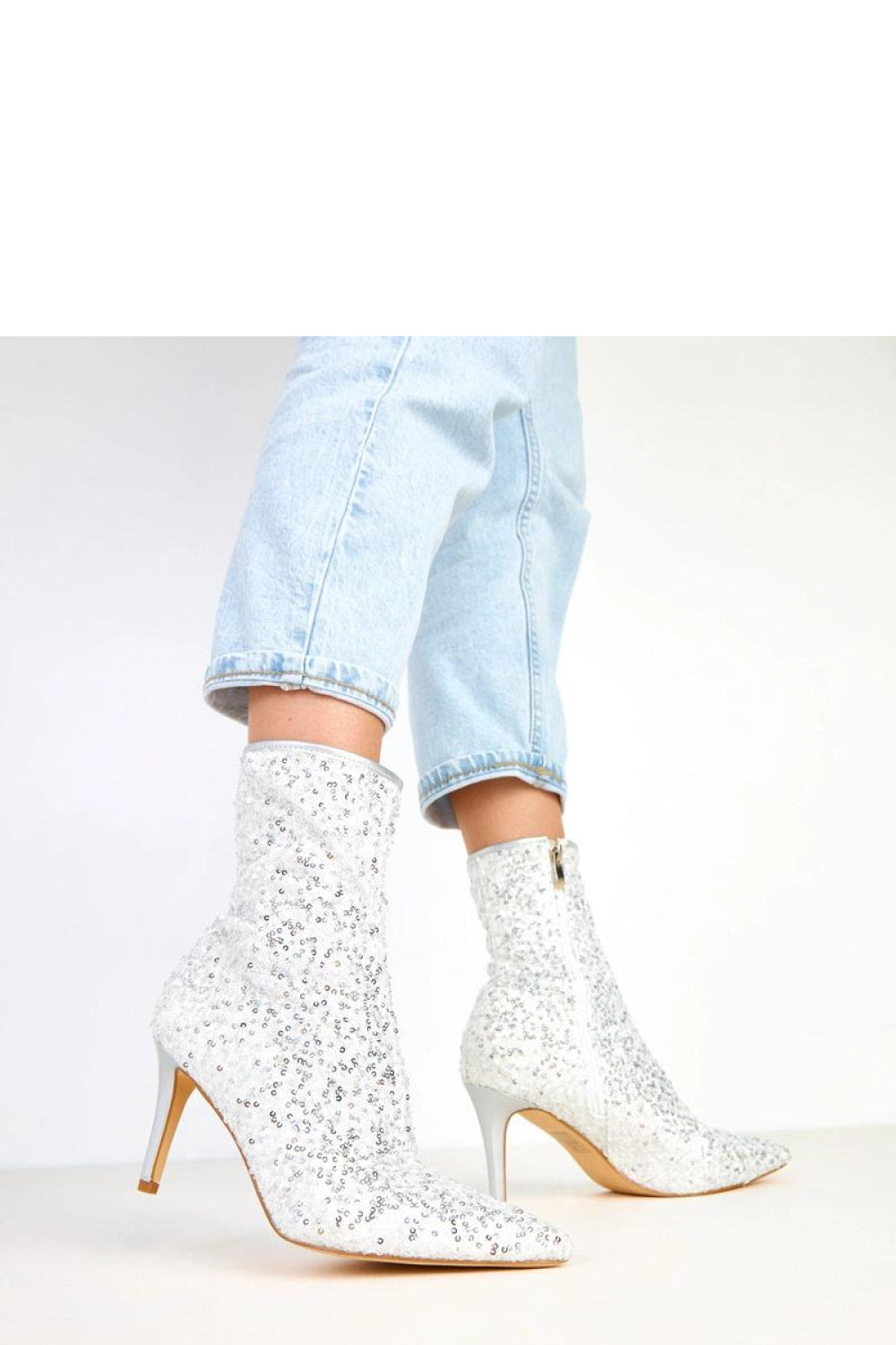 Elegantes botines que cautivan con su original diseño y el brillo de sus lentejuelas. Fabricados en tela, lucen excepcionalmente elegantes y realzan cualquier look. El modelo, con punta puntiaguda y fino tacón de aguja de 8,5 cm, estiliza la silueta y aporta una elegancia femenina. La caña de 18 cm y el práctico cierre de cremallera garantizan comodidad. El interior de los zapatos está rematado con tela, lo que aumenta la comodidad. Perfectos para ocasiones especiales en las que quieres brillar y destacar con estilo.