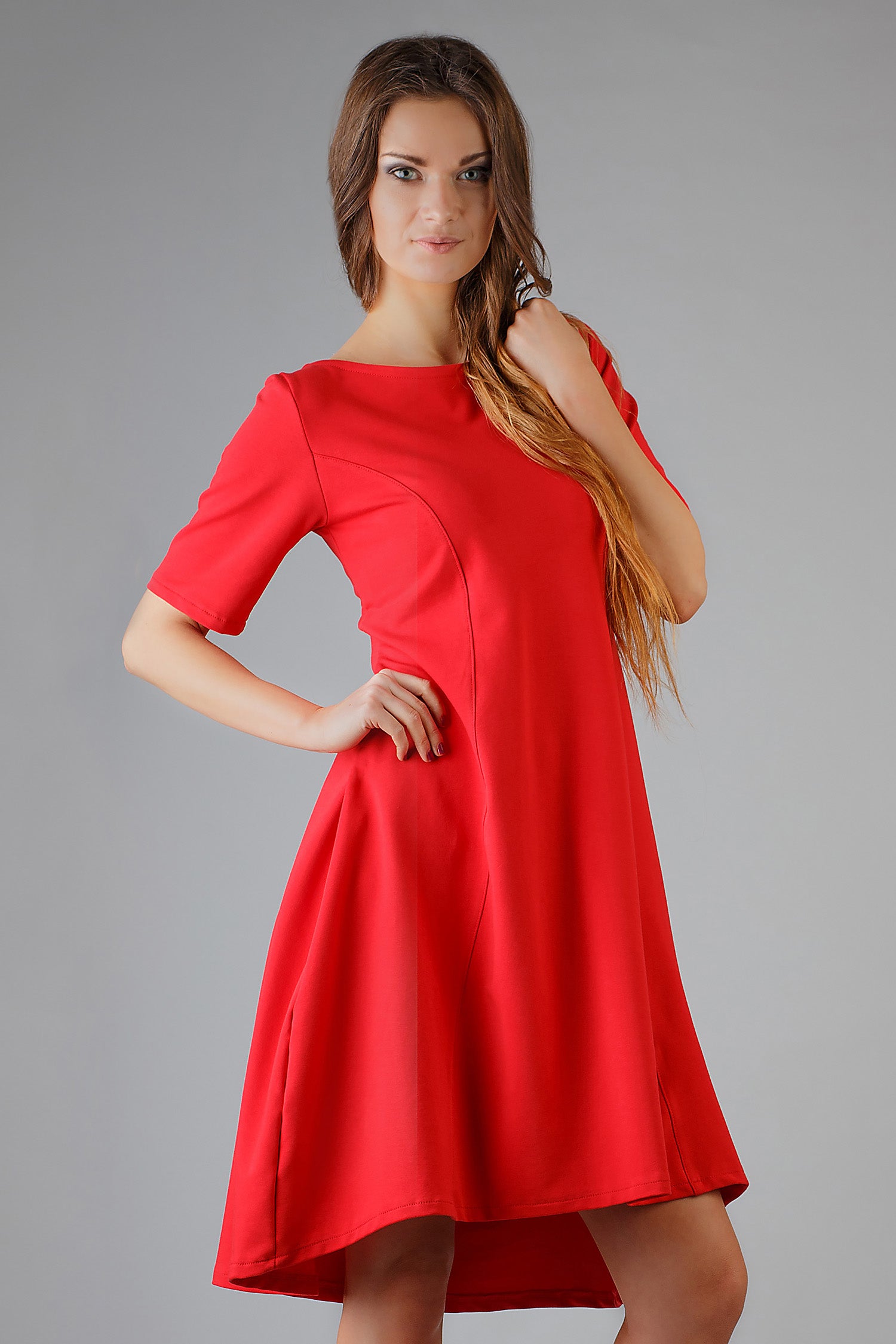 Vestido de punto acampanado. Corte holgado. Escote barco. La parte delantera del vestido presenta elegantes cortes franceses que realzan las siluetas femeninas.
