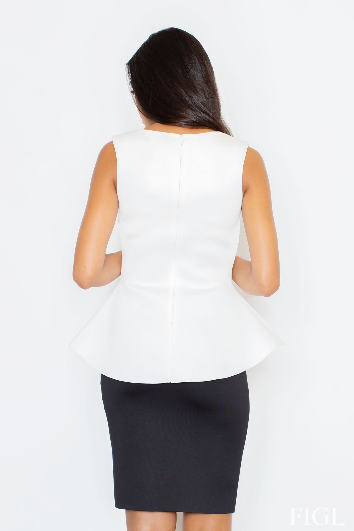 Elegante blusa de poliéster, ajustada al cuerpo. Escote redondo, hombros sensualmente descubiertos y cremallera oculta en la espalda. Un corsé en la cintura envuelve las caderas. Esta blusa combina con muchos estilos.