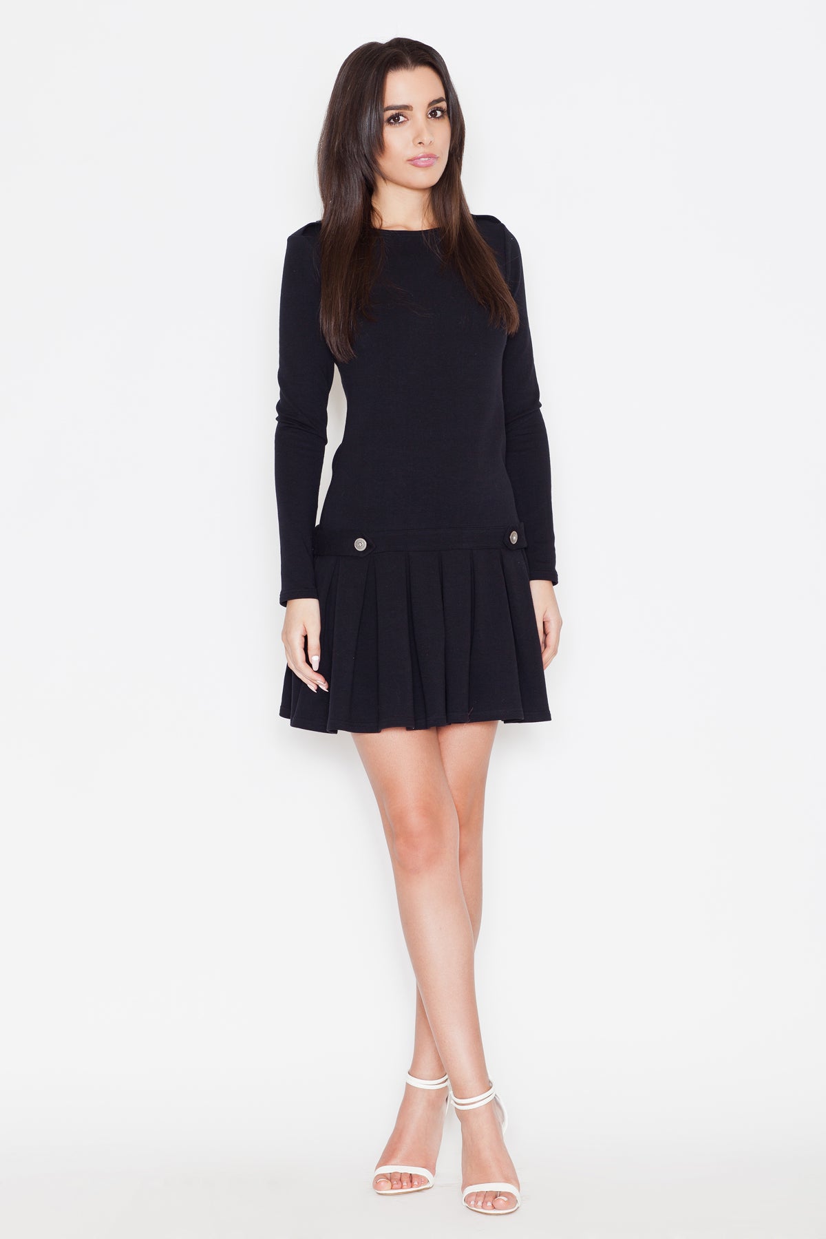 Vestido de algodón de manga larga con charreteras en hombros y caderas, botones decorativos, sin bolsillos y cremallera oculta en la espalda.