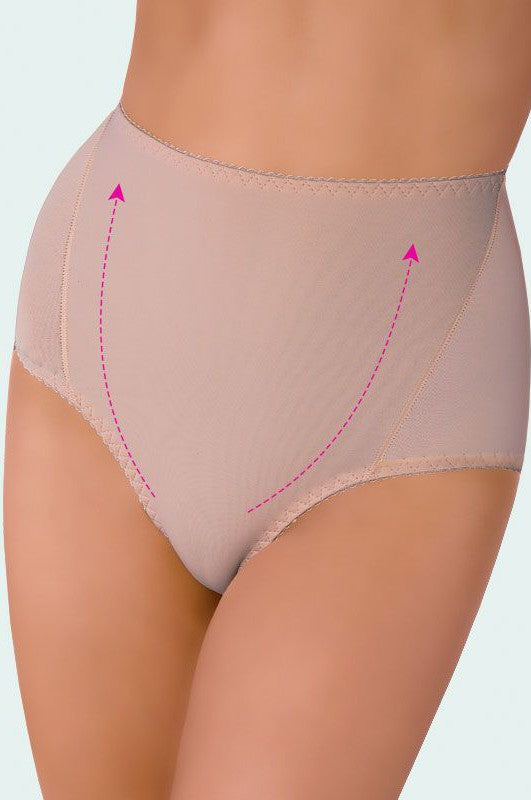 Bragas completamente lisas, casi completamente invisibles debajo de la ropa, que también moldean ligeramente la línea del cuerpo. El tejido tensor mejora la apariencia de las caderas y aplana el abdomen. Debajo del vestido ajustado quedará perfecto.