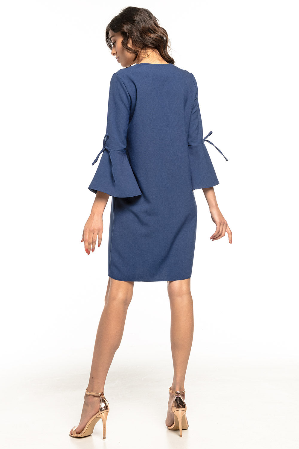 Un vestido sencillo y holgado con un coqueto volante en las mangas y un sutil escote en V. Este vestido es nuestra propuesta para todas aquellas mujeres que prefieren los vestidos ajustados, pero que a la vez buscan elegancia. Su corte disimulará cualquier imperfección.