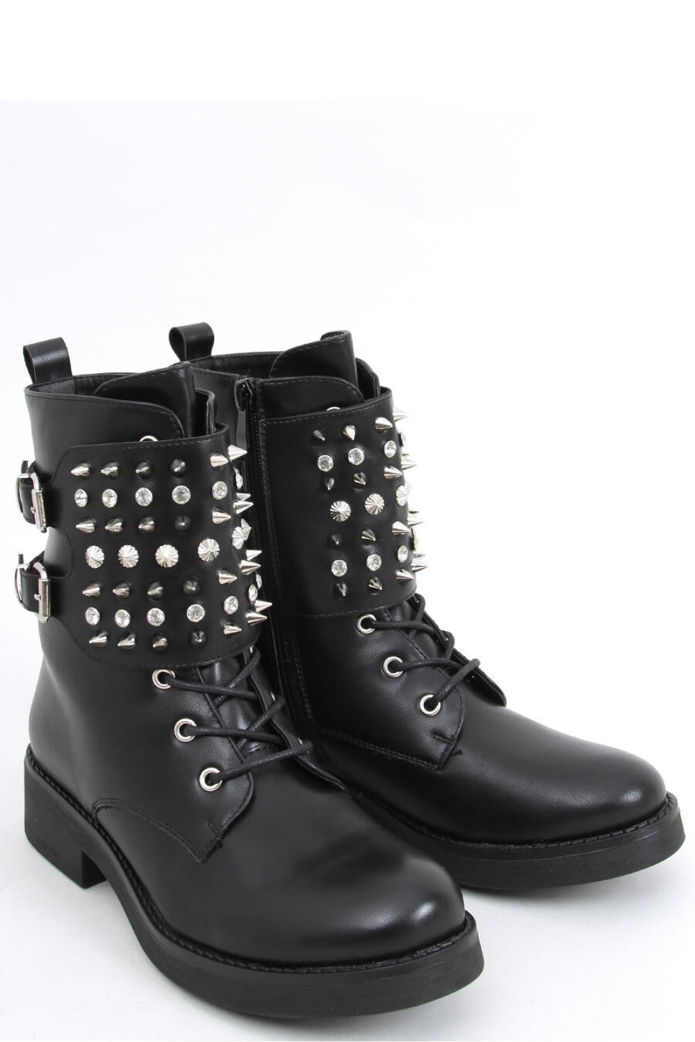 ¿Botas de mujer? glande sobre suela plana. Si te gustan los estilos clásicos con un toque de locura, ¡este modelo seguro llamará tu atención! Impresionantes tachuelas y piedras les dan un carácter roquero. Los zapatos tradicionalmente se atan, pero también tienen una práctica cremallera en el lateral, que garantiza un calce cómodo. Están fabricados en piel ecológica con forro de espuma.