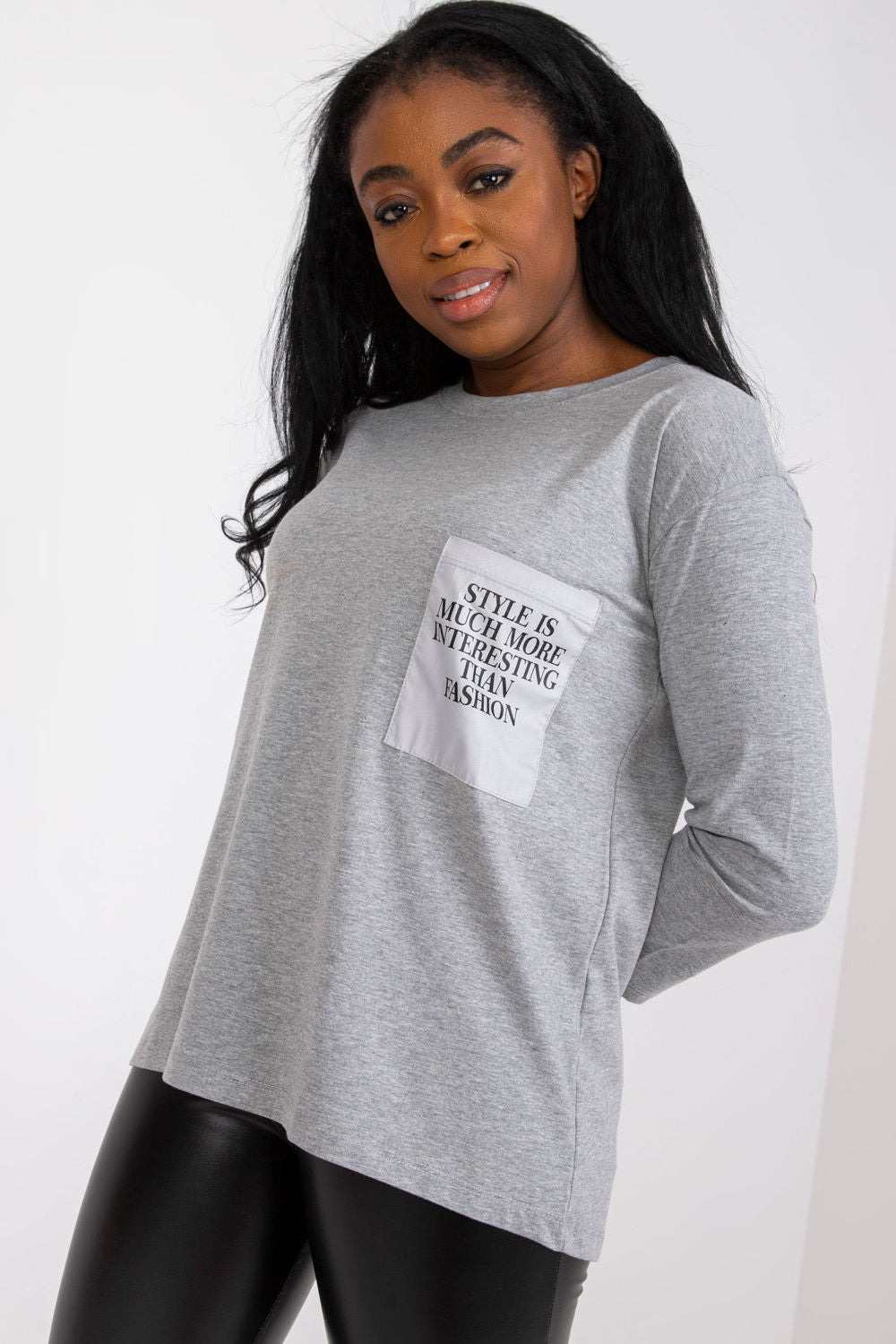 Blusa de corte informal con mangas largas. Bolsillo de parche estampado en la parte delantera.