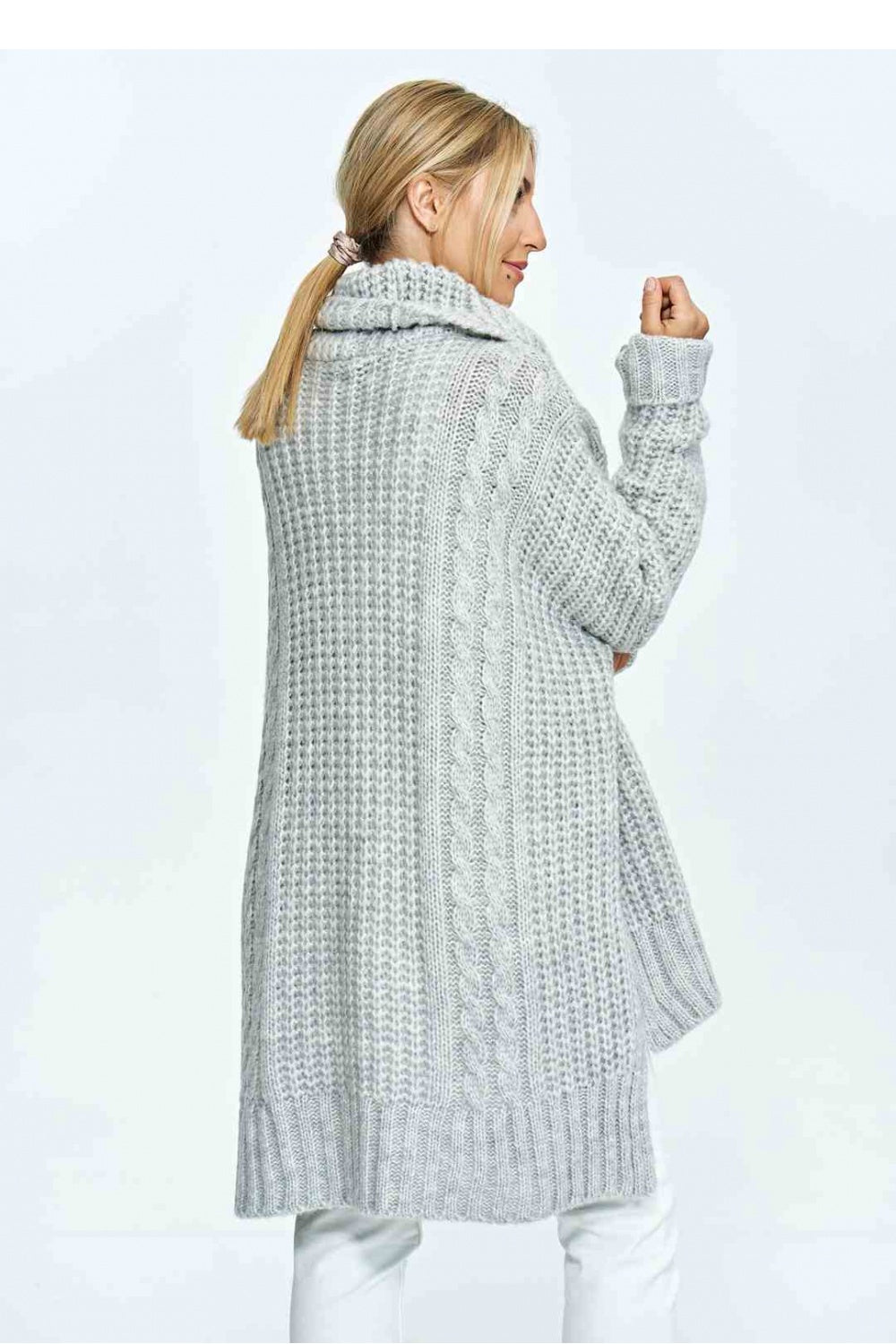 Suéter holgado de cuello alto alto, con tejido a cuadros decorativos. Suéter con espalda larga.
