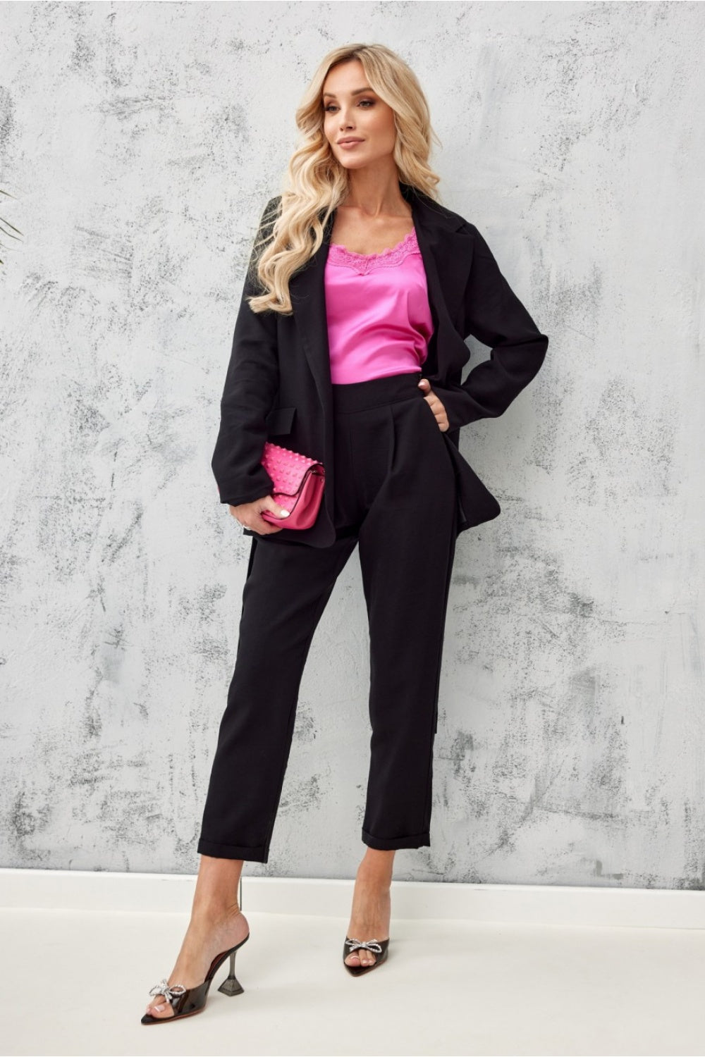 Estos elegantes pantalones tienen perneras rectas rematadas con un delicado dobladillo. Esto los hace lucir extremadamente elegantes, incluso acompañados de zapatillas. Hay bolsillos inclinados a los lados y un cierre de cremallera en el lateral. Vienen en una combinación de colores sólidos, lo que aumenta su estilo atemporal. Confeccionada en tejido liso y de corte clásico. El producto está fabricado y cosido en Polonia.