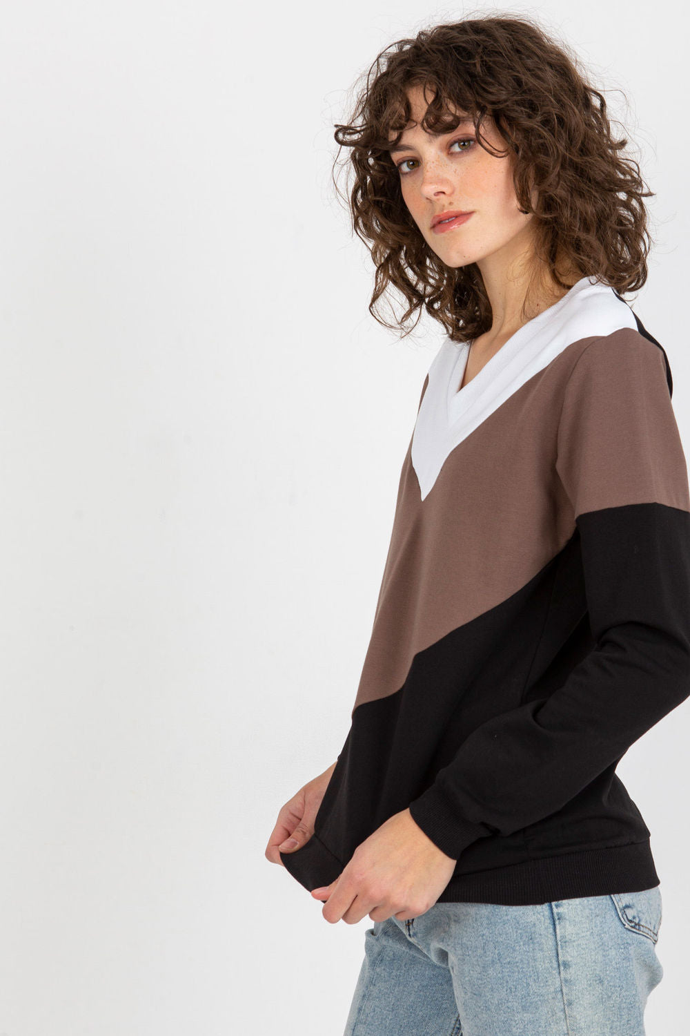 Sudadera de mujer con manga larga y escote corazón. La sudadera está confeccionada en tela en tres colores.