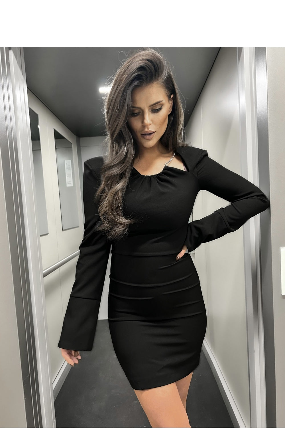 Elegante vestido mini con cadena decorativa, manga larga y escote redondo. Una propuesta ideal para una velada.