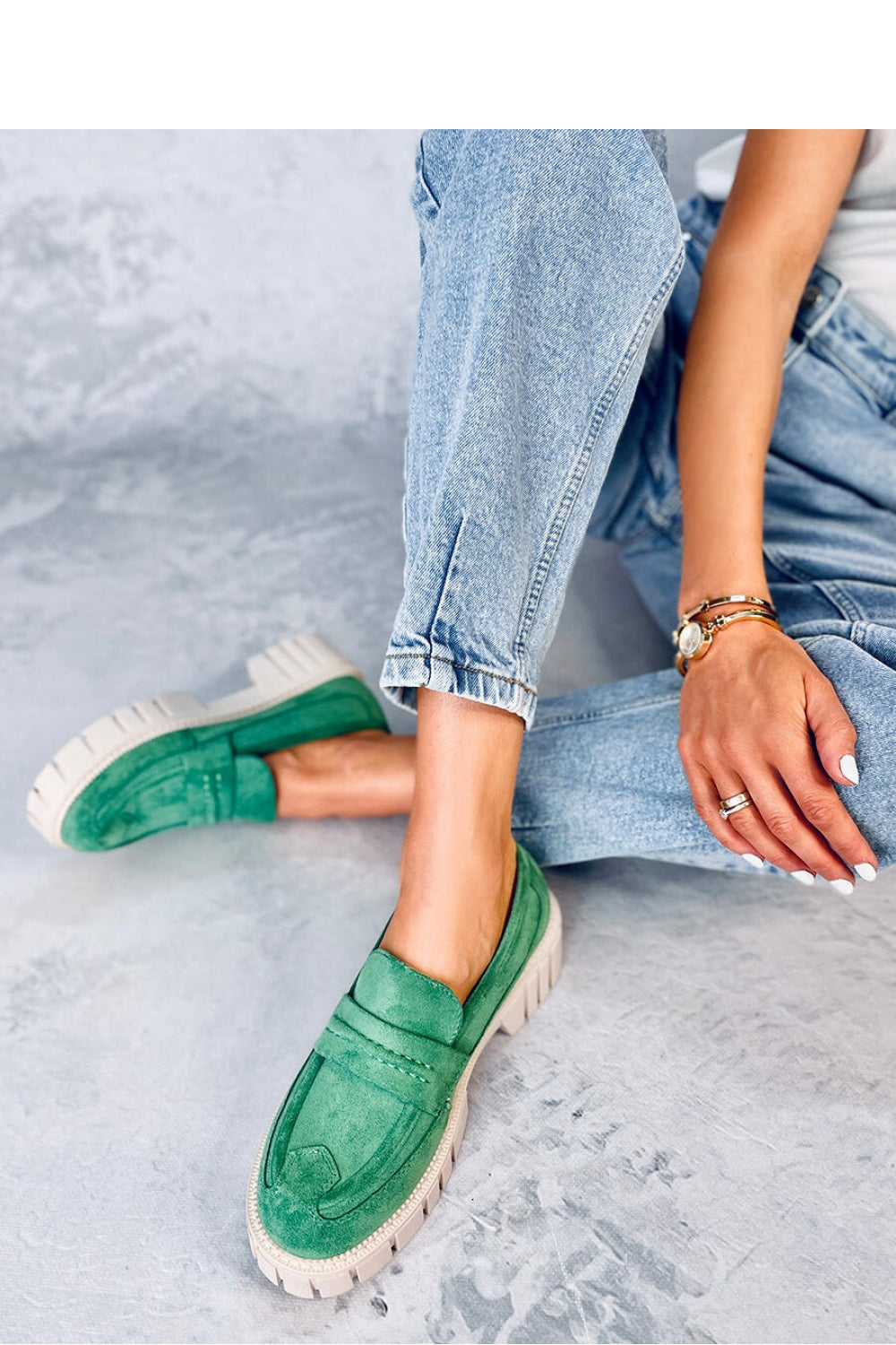 Mocasines de mujer en ante con plataforma. El modelo se distingue por el corte más moderno con una suela maciza de 2,5 cm de altura. ¿Probablemente sabes qué zapatos reinarán en tu armario? : ) Están hechos de ante ecológico, lo que enfatiza su estilo único....