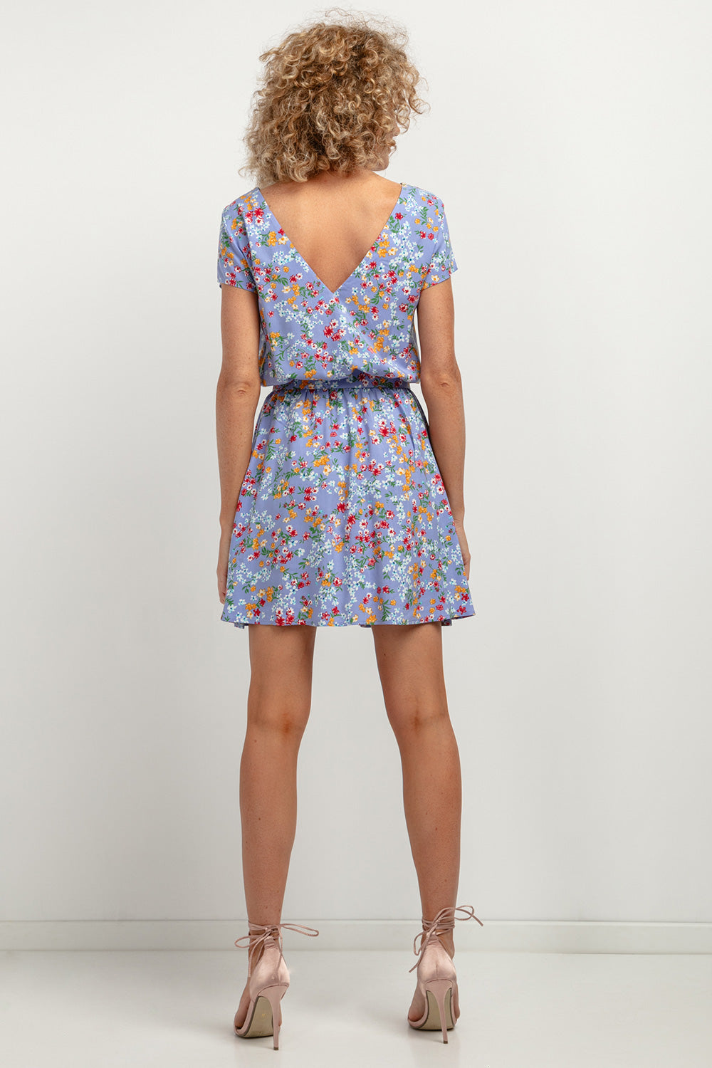 Este hermoso vestido es una excelente opción tanto para un estilo elegante como para el día a día. La parte superior tiene un corte holgado, tipo kimono, y un bajo ligeramente acampanado que llega por debajo de la rodilla. Hermosos estampados florales y un profundo escote en V en la espalda llaman la atención, mientras que un cinturón anudado con hebilla dorada acentúa la cintura.