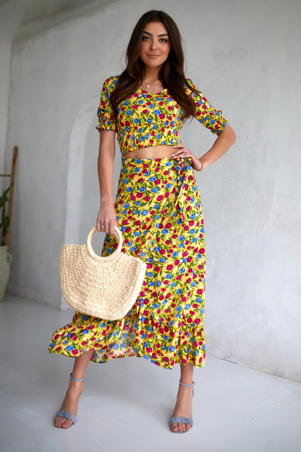 El conjunto floral de verano de blusa y falda larga es una opción versátil para todas las ocasiones. Puedes usarlo con deportivas o stilettos en ambos estilos quedará fenomenal.