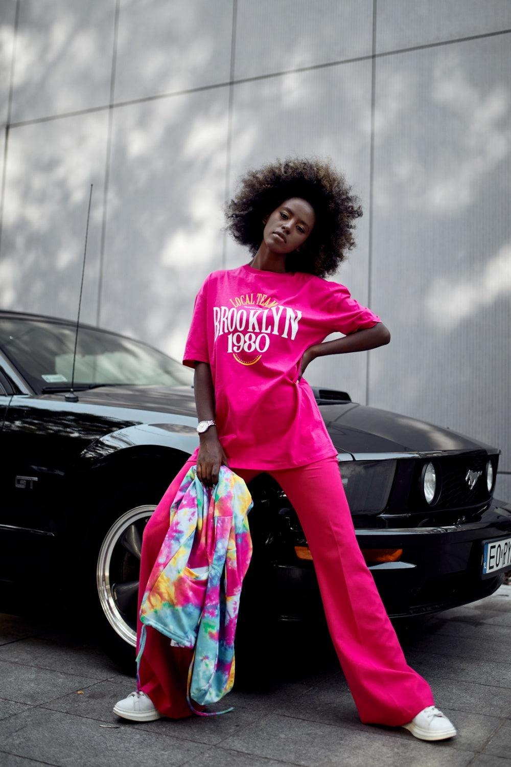 Los pantalones de color fucsia con pernera ensanchada en el dobladillo son una alternativa ideal a las faldas. Los pantalones se cierran lateralmente con una cremallera cubierta. Perfecto tanto para estilismo casual como elegante.