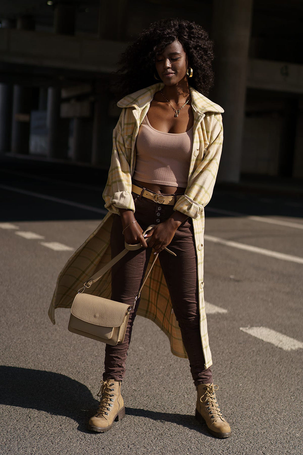 ¿Buscas un modelo atemporal que nunca pase de moda? Elige nuestro abrigo a cuadros beige y verde. El abrigo siempre está listo para salir. El abrigo es abotonado y tiene grandes bolsillos en la parte delantera.