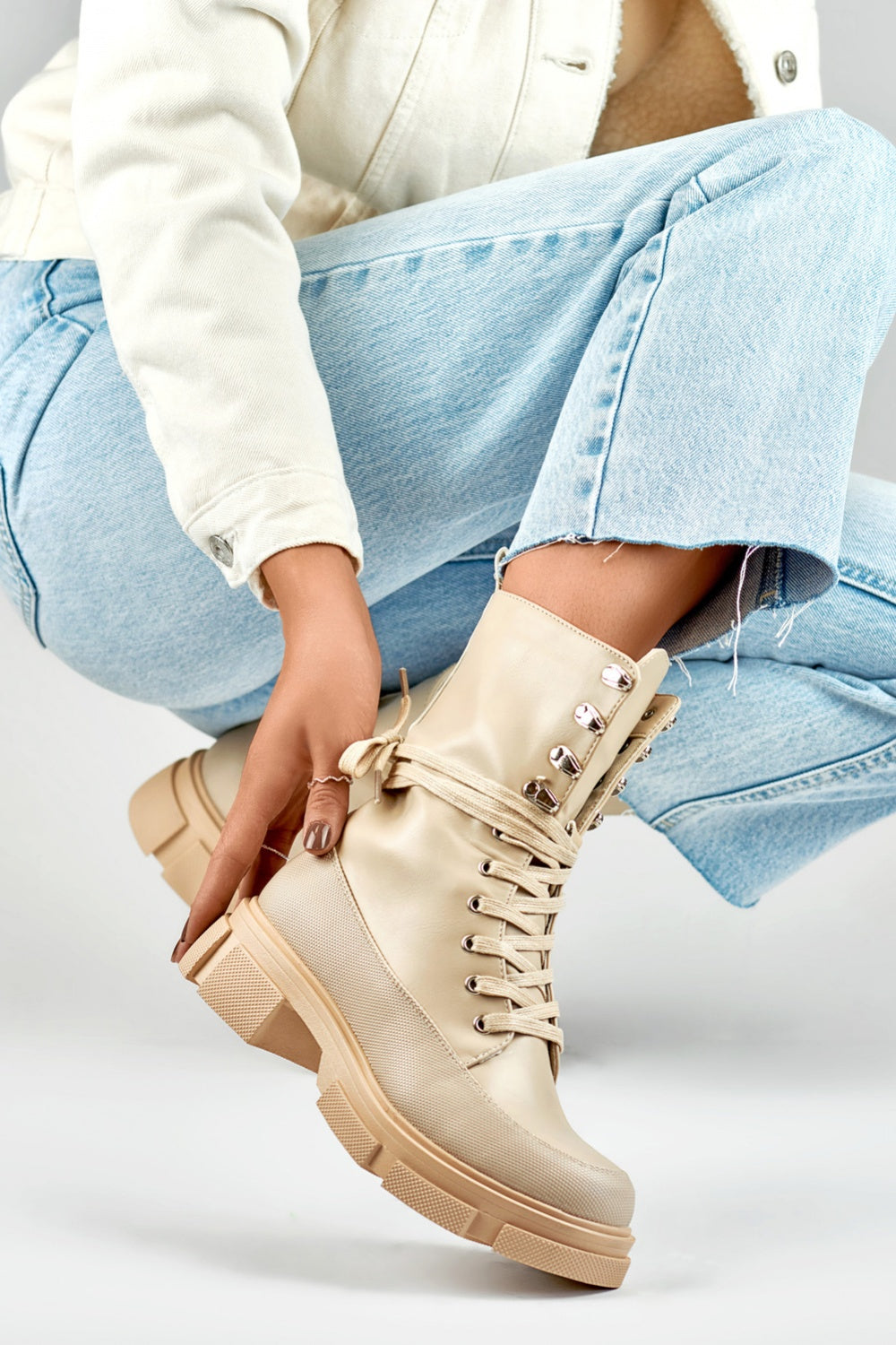 Estas elegantes bolsas son la elección perfecta para la temporada otoño/invierno. Están confeccionadas en cuero ecológico duradero y cuentan con una parte superior de 20 cm de altura, que brinda protección y comodidad en los días más fríos. El interior de los zapatos está forrado con una plantilla textil suave, que proporciona comodidad durante su uso. Un tacón bajo y estable de 4 cm de altura garantiza una pisada segura. Los zapatos se abrochan con cordones tradicionales, lo que permite un ajuste personalizado. La puntera redonda le da a los zapatos un aspecto moderno y los hace muy cómodos. Estas bolsas serán una gran adición a muchos conjuntos de otoño e invierno.