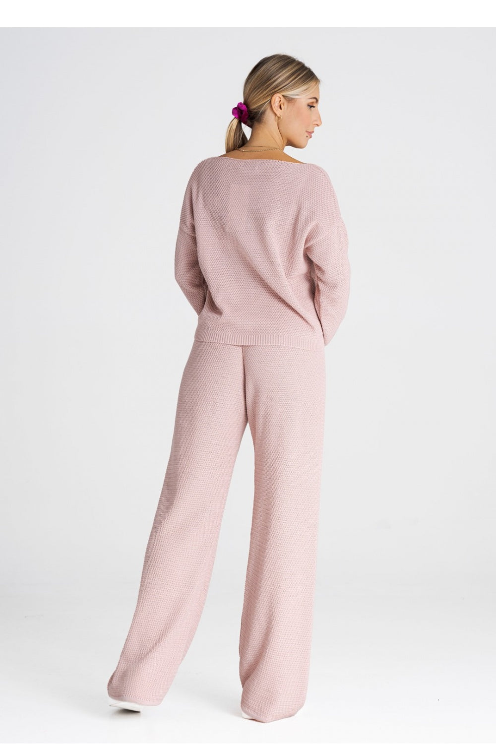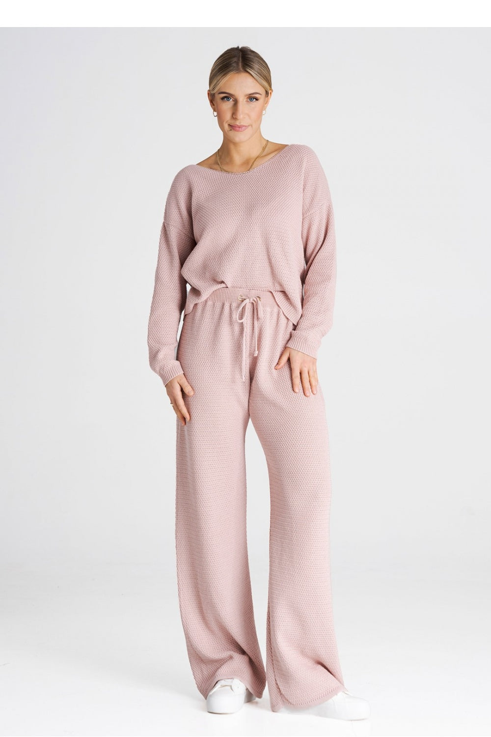 Conjunto compuesto por sudadera de manga larga y pantalón largo holgado atado a la cintura.