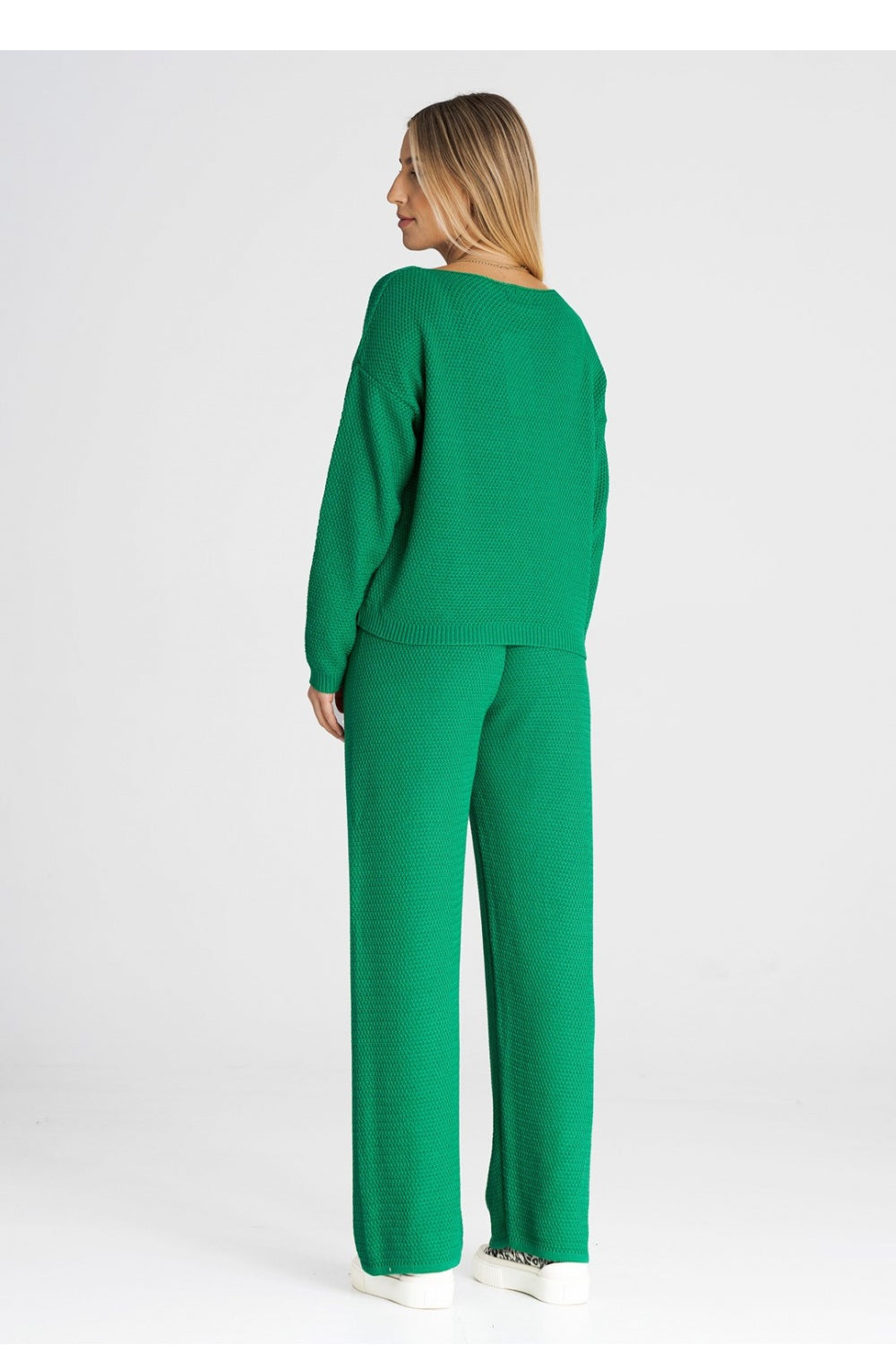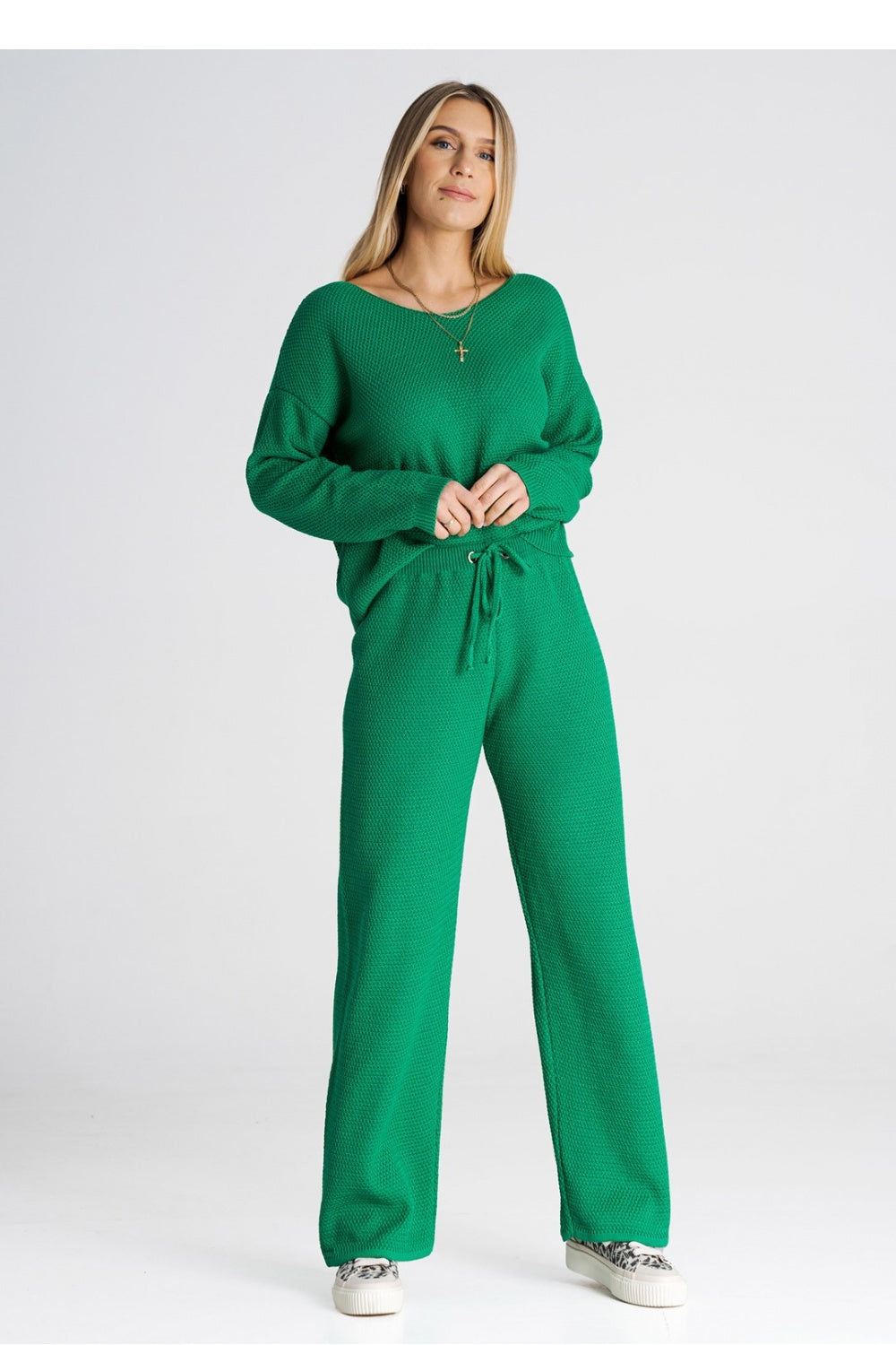 Conjunto compuesto por sudadera de manga larga y pantalón largo holgado atado a la cintura.