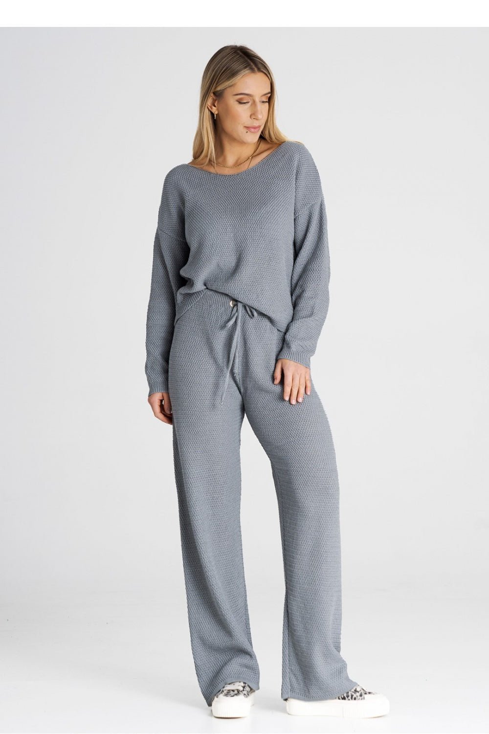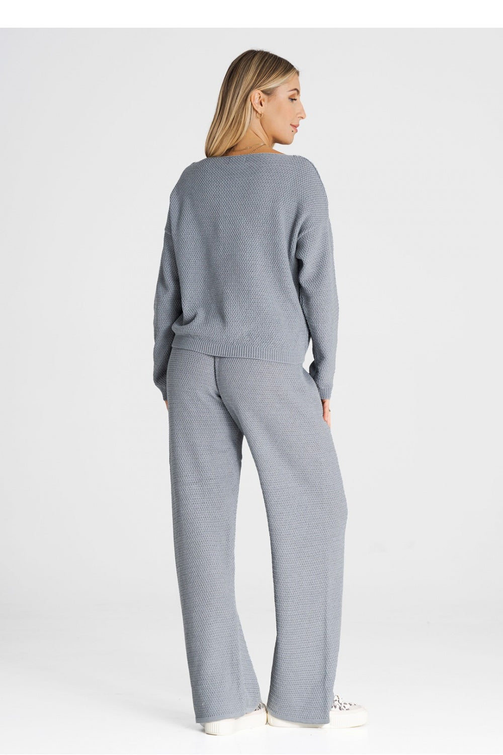 Conjunto compuesto por sudadera de manga larga y pantalón largo holgado atado a la cintura.