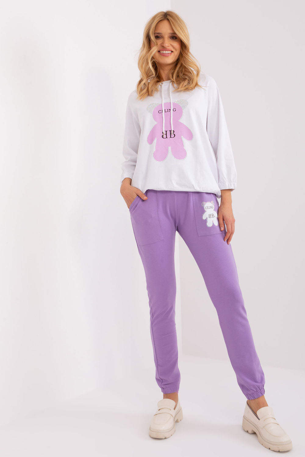Conjunto de sudadera y pantalón. Sudadera de manga larga y cuello redondo. Estampado decorativo de osito de peluche en la parte delantera. Pantalón largo con lazo en la cintura y bolsillos.
