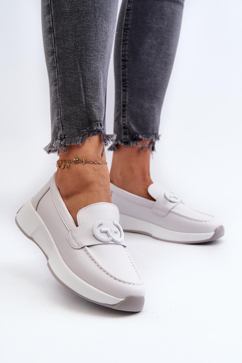 Los mocasines para mujer de piel natural de la marca S.Barski combinan elegancia y comodidad. Su encanto único se realza aún más con la decoración en la parte delantera. La plataforma proporciona amortiguación adicional y estabilidad. Son ideales para una amplia variedad de looks, desde casuales hasta elegantes.