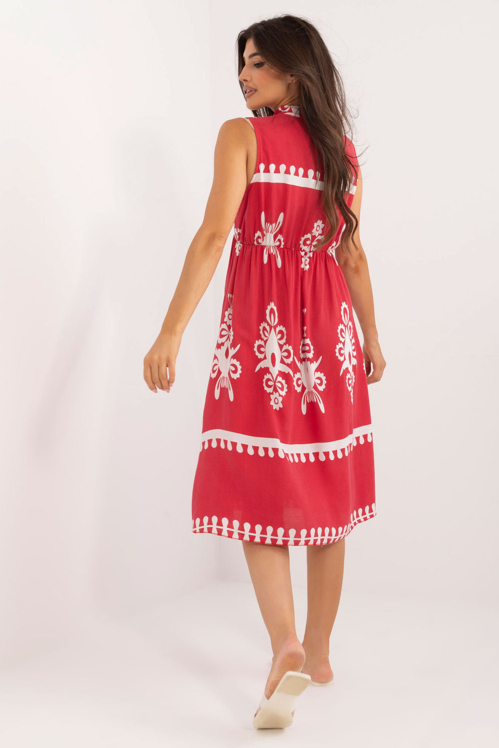 Este vestido bohemio de verano es la elección perfecta para el estilo diario. Confeccionado en viscosa dominante, proporciona comodidad y transpirabilidad en los días cálidos. El corte midi evasé le aporta un aire ligero y casual, encajando a la perfección con el estilo boho. El vestido tiene un estampado en contraste, que añade definición y llama la atención. Sin mangas, con un elegante cuello alto y ribete en el escote, enfatiza el estilo informal del verano. Además, las borlas en el escote aportan un toque étnico único. Es el vestido perfecto para paseos, reuniones con amigos o festivales de verano.