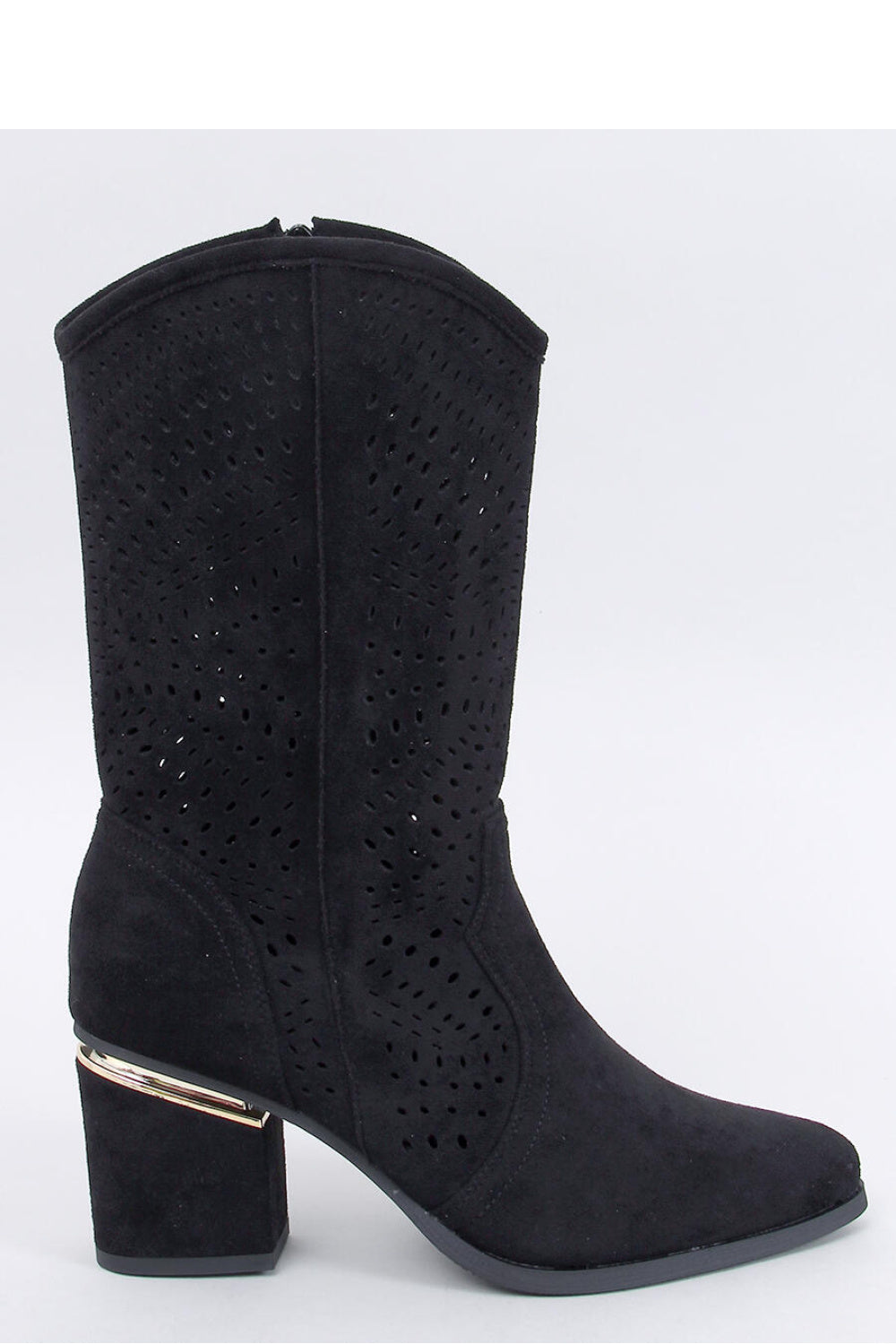 Botas de tacón con empeine calado y corte con un patrón sutil. Están confeccionados en suave ante ecológico. En el interior, tienen una cremallera de altura completa para facilitar su colocación. Tienen un tacón ancho y estable con una delicada inserción dorada que aporta un toque de elegancia. Es difícil pasar por alto con indiferencia. ¿Material exterior? Ante ecológico.