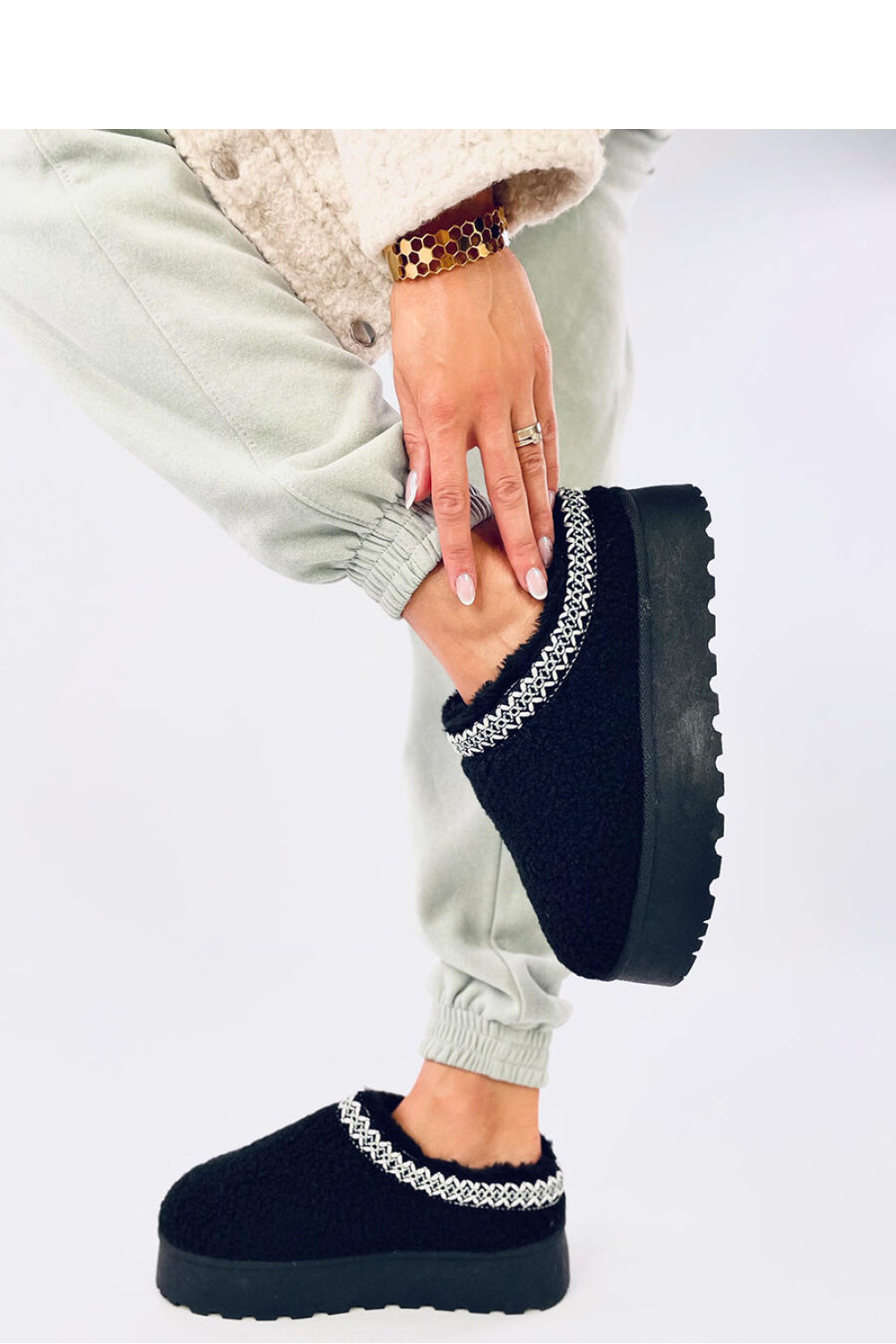 Las pantuflas de nieve cortas con plataforma son un must have indiscutible de la temporada. Los zapatos están aislados con piel gruesa y tienen suela alta. Gracias al tacón más alto, sujetan perfectamente el pie y son increíblemente cómodos. El material exterior tiene textura de piel de cordero y el dobladillo en contraste con estampado azteca realza su aspecto invernal. Material exterior: plástico con textura de piel de cordero.