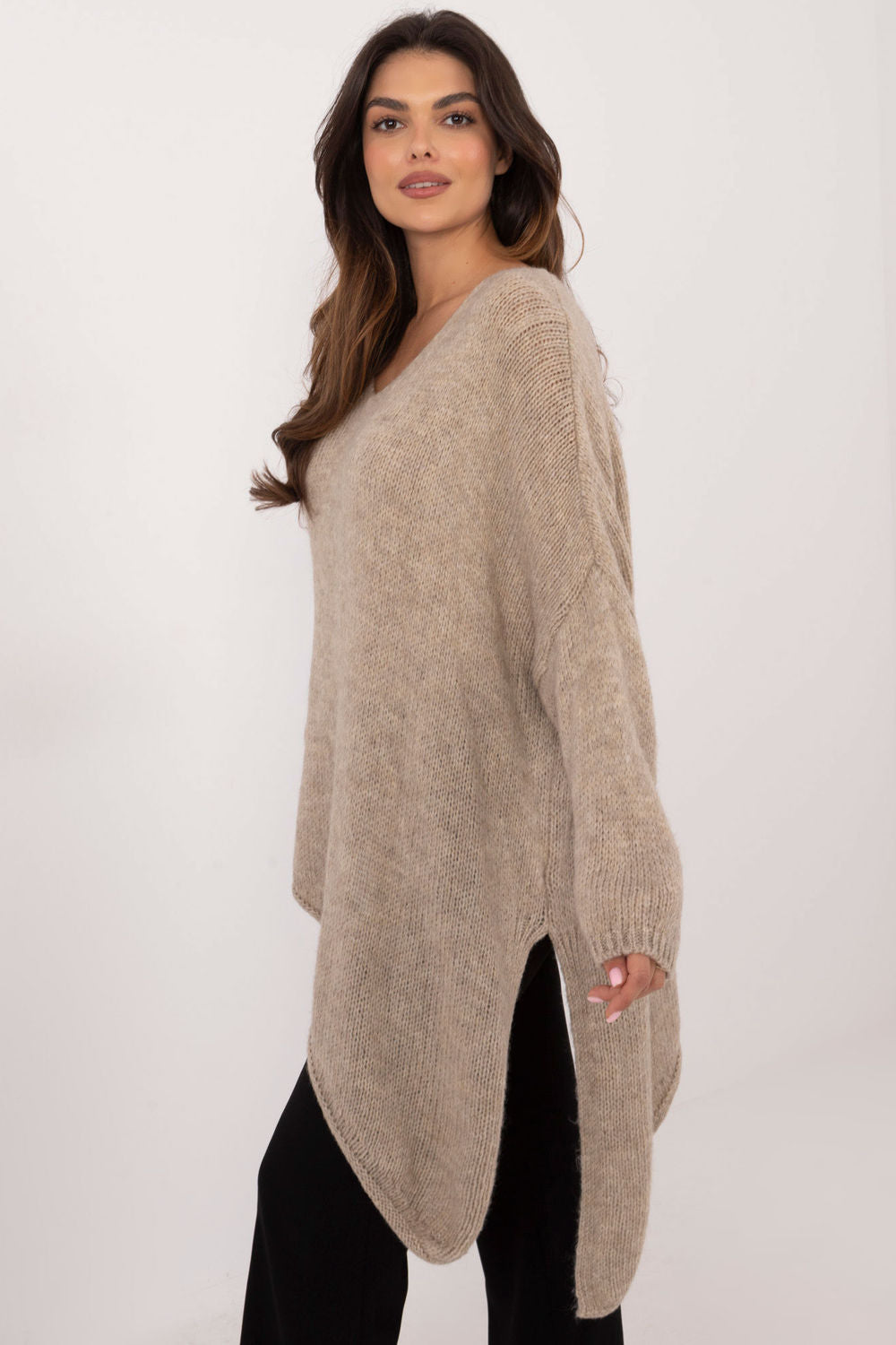 Suéter de mujer con un toque casual, ideal para el día a día. Fabricado con una mezcla de materiales de alta calidad, como poliacrílico, viscosa, lana y poliamida, proporciona comodidad y una agradable calidez. El estampado liso predomina en el diseño, dándole un aspecto versátil y elegante. El jersey tiene un bajo asimétrico que le aporta un carácter moderno y original. El corte largo y la manga larga lo hacen ideal para los días más fríos. El escote de corazón deja el cuello al descubierto sutilmente, aportando ligereza al estilo. Una opción perfecta para el día a día, que combina comodidad con un look moderno.