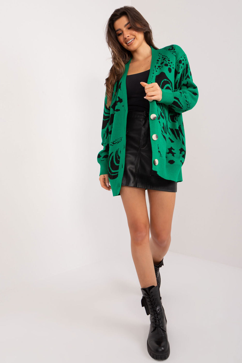 Un suéter largo e informal para mujer es una opción perfecta para el uso diario y el trabajo. Confeccionado con una mezcla de acrílico y lana, es suave, cálido y confortable. Tiene un escote en pico que acentúa sutilmente la silueta, además de un práctico cierre de botones. Las mangas largas y el corte más holgado garantizan comodidad, y el estampado irregular aporta un carácter original al jersey. Combina bien tanto con vaqueros como con pantalones elegantes, creando un look elegante pero cómodo.