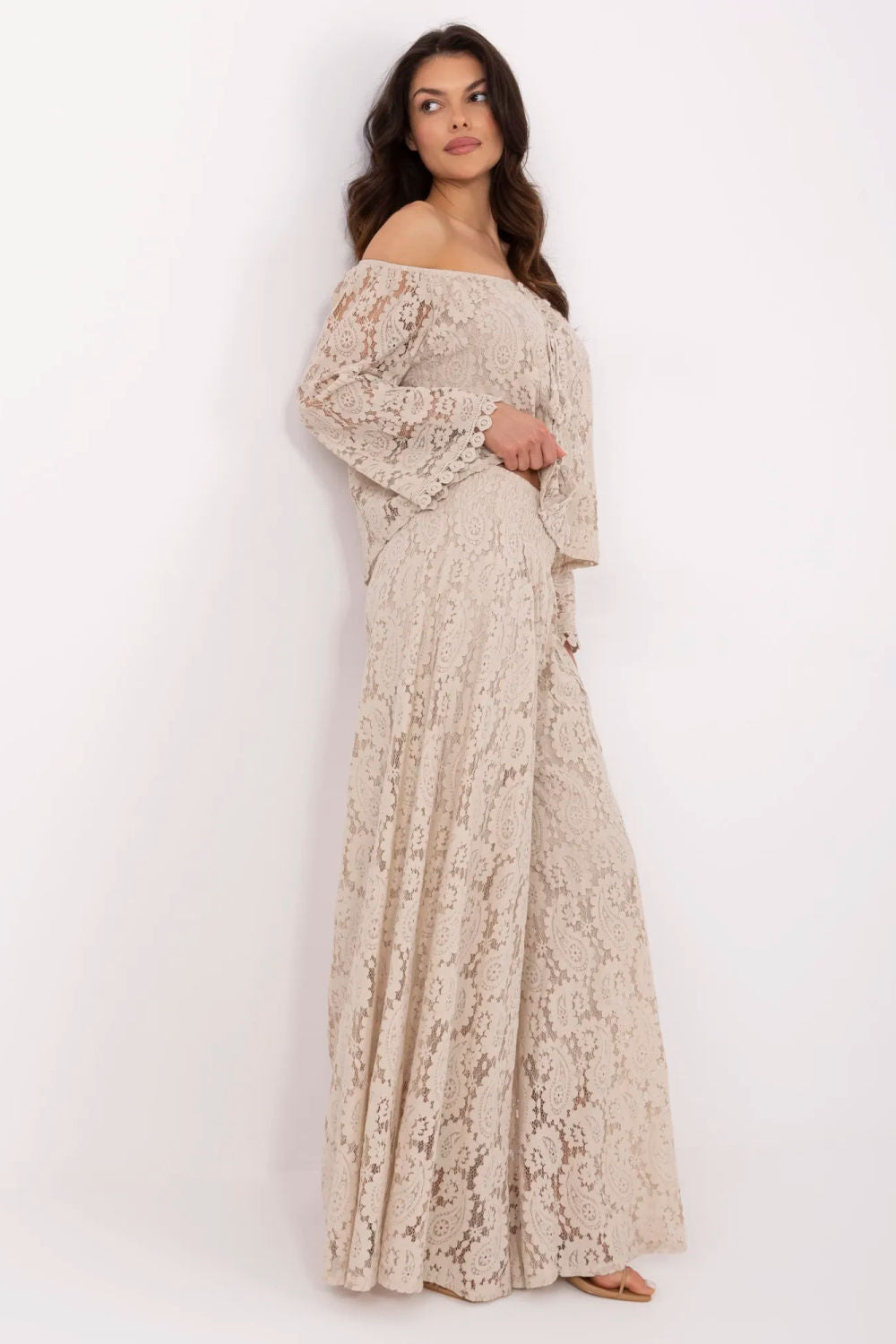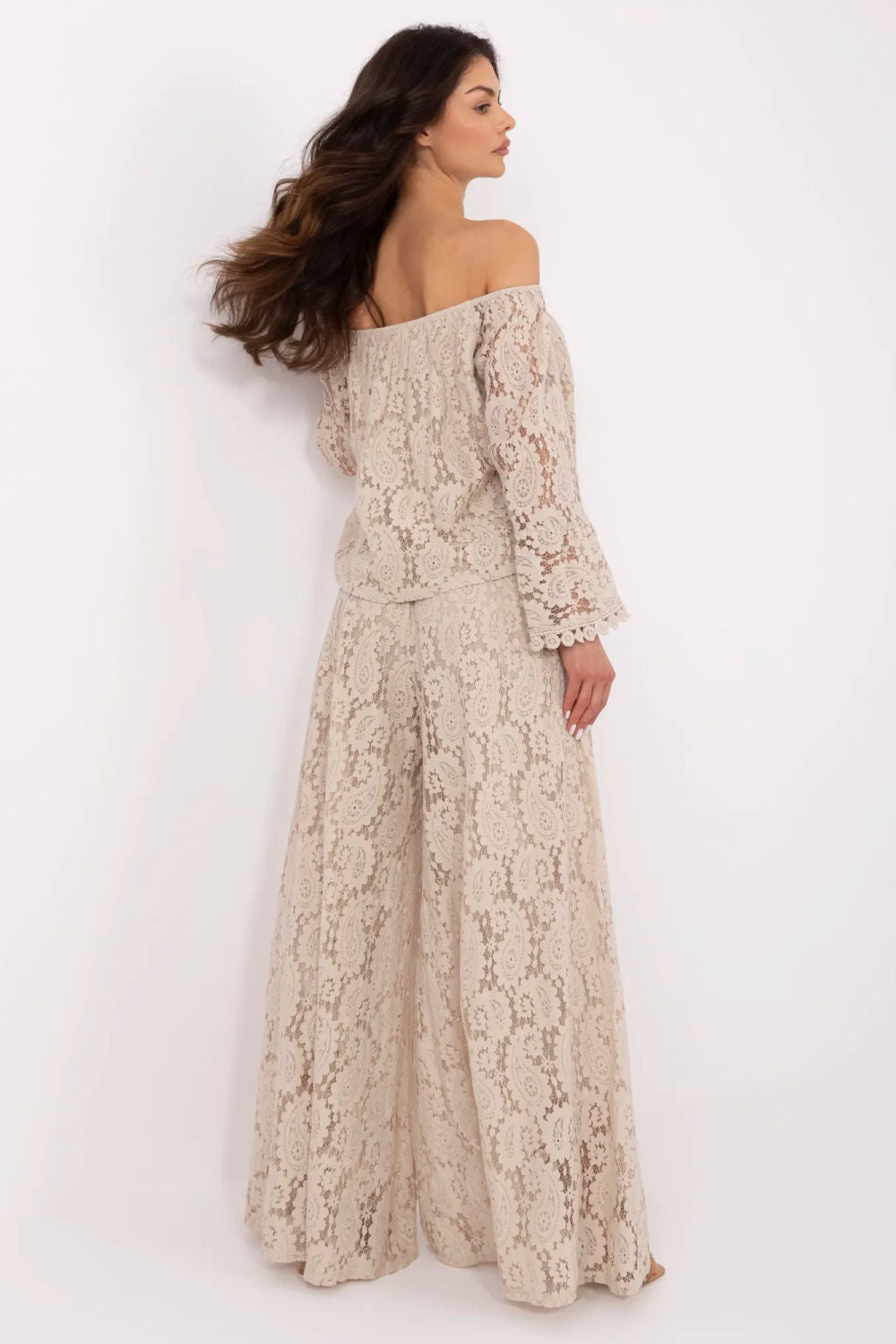 Los elegantes pantalones palazzo de encaje son una propuesta con estilo para mujeres que aprecian la elegancia y la comodidad. Confeccionados con delicado encaje sobre un forro, combinan un sutil encanto con la comodidad del día a día. Su tejido de mezcla de algodón y nailon los hace ligeros, transpirables y agradables al tacto. Las perneras anchas estilo palazzo se mueven con facilidad, aportando ligereza y un carácter moderno a la silueta. La ausencia de cierres garantiza una fácil colocación y un acabado suave en la cintura. Este modelo es perfecto para diversas ocasiones: para el trabajo, para el día a día, así como para fiestas o salidas elegantes. Su elegante encaje y su largo clásico crean un efecto impactante sin esfuerzo; basta con añadir un top sencillo o una blusa elegante.