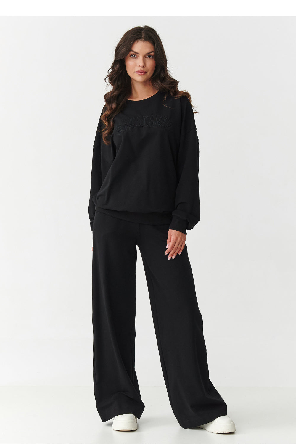 Combina comodidad y un look moderno con este conjunto de chándal para mujer, perfecto para el día a día, para salidas informales o para relajarte en casa. Confeccionado en tejido suave y transpirable (95 % algodón y 5 % elastano), garantiza comodidad y un ajuste perfecto sin restringir el movimiento. La parte superior del conjunto es una sudadera clásica con cuello redondo y hombros ligeramente caídos. Su corte ligeramente oversize le da un toque informal y moderno. Su singularidad se realza con el logo bordado en la parte delantera, que aporta originalidad y un estilo sutil al conjunto. Los pantalones destacan por su corte moderno de perneras anchas, que se adaptan al cuerpo y aportan ligereza y equilibrio a la silueta. La cinturilla elástica y los prácticos bolsillos aumentan la funcionalidad y la comodidad. Ideal para cualquier temporada, este chándal con perneras anchas y bordado es imprescindible en el armario de cualquier mujer. ¡Comodidad, calidad y un look moderno en un solo conjunto!